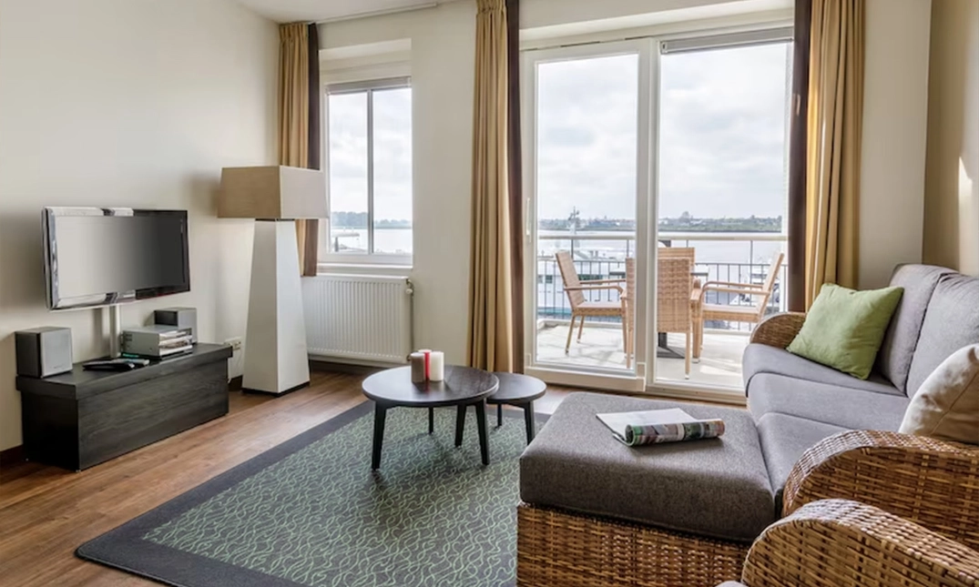 Voor 4 of 6 personen: verblijf 2, 3 of 4 nachten in een Waterfrontsuite VIP-appartement bij Center Parcs De Eemhof, gelegen aan Jachthaven De Eemhof