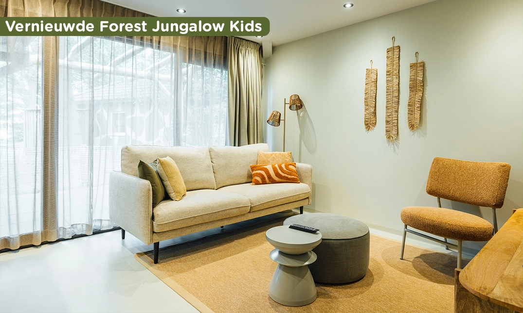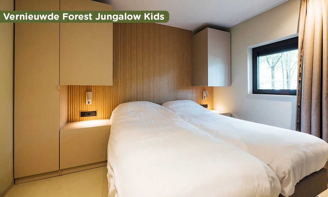In Lake Resort Beekse Bergen kom je dichter bij de natuur! Te midden van een uitgestrekt landschap vol groen, langs de glinsterende oevers van het Victoriameer, ligt dit paradijs voor natuurliefhebbers en avonturiers. Grijp nu je kans en verblijf als één van de eersten in een gloednieuwe, vernieuwde Forest Jungalow Kids. Geniet van een heerlijke (korte) midweek of (lang) weekend, zelfs met aankomst in de Paas-, Mei- en Zomervakantie.