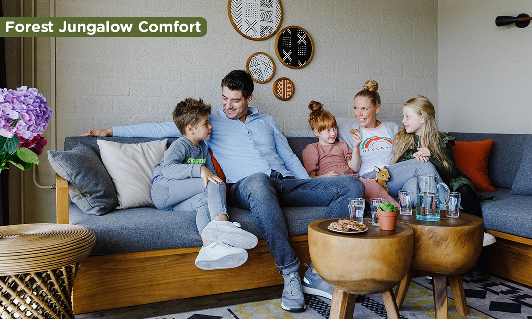Zin in een heerlijk (lang) weekend of een (korte) midweek midden in de natuur? Bij Lake Resort Beekse Bergen verblijf je aan het schitterende Victoriameer, omringd door avontuur. Kies voor een Forest Jungalow Kids Vernieuwd voor 3 of 4 personen of een Forest Jungalow Comfort voor 4, 5 of 6 personen. De Forest Jungalow Kids Vernieuwd is helemaal gerenoveerd en heeft een frisse, eigentijdse inrichting. Je geniet van nieuw meubilair, comfortabele vloerverwarming en zelfs een (deels) overdekt, omheind terras. Stuk voor stuk compleet ingericht, zodat je het comfort van thuis niet hoeft te missen. Tijdens je verblijf ontvang je een AttractiePas, waarmee je onbeperkt toegang krijgt tot het Safaripark en Speelland Indoor Beekse Bergen, maar ook tot ZooParc Overloon en Eindhoven Zoo.