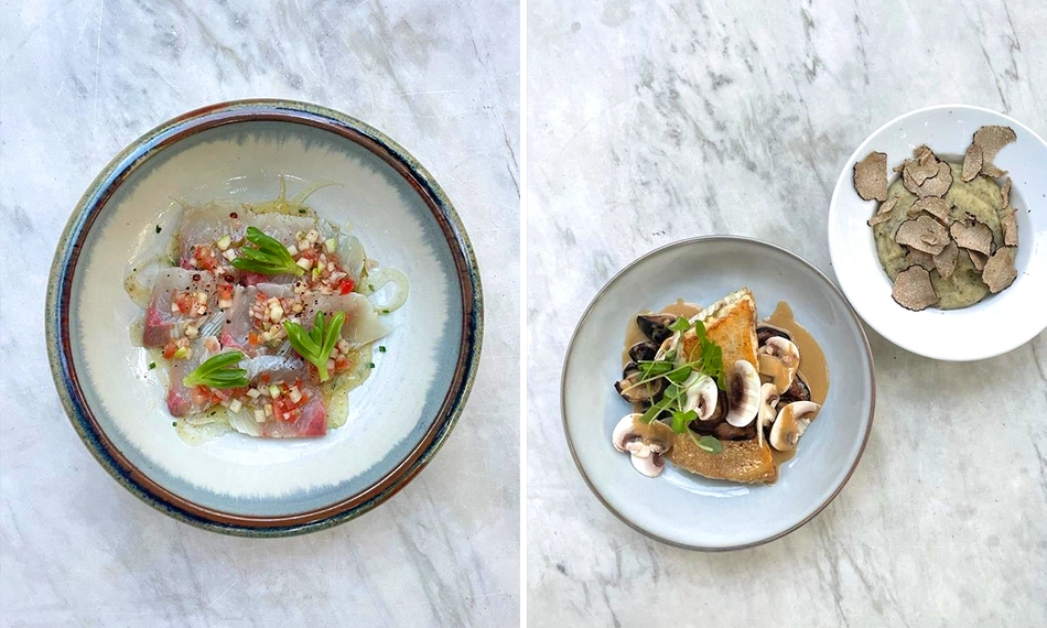 Bovenstaand menu is een voorbeeldmenu en wisselt regelmatig op basis van dagverse ingrediënten en seizoensproducten